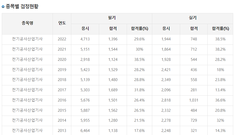 전기공사산업기사 자격증 합격률